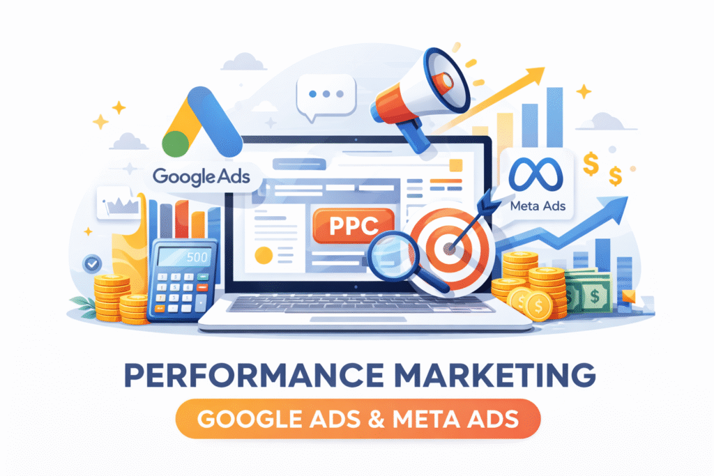 Performance marketing is paid advertising where results like leads, clicks, or sales are tracked and measured clearly.